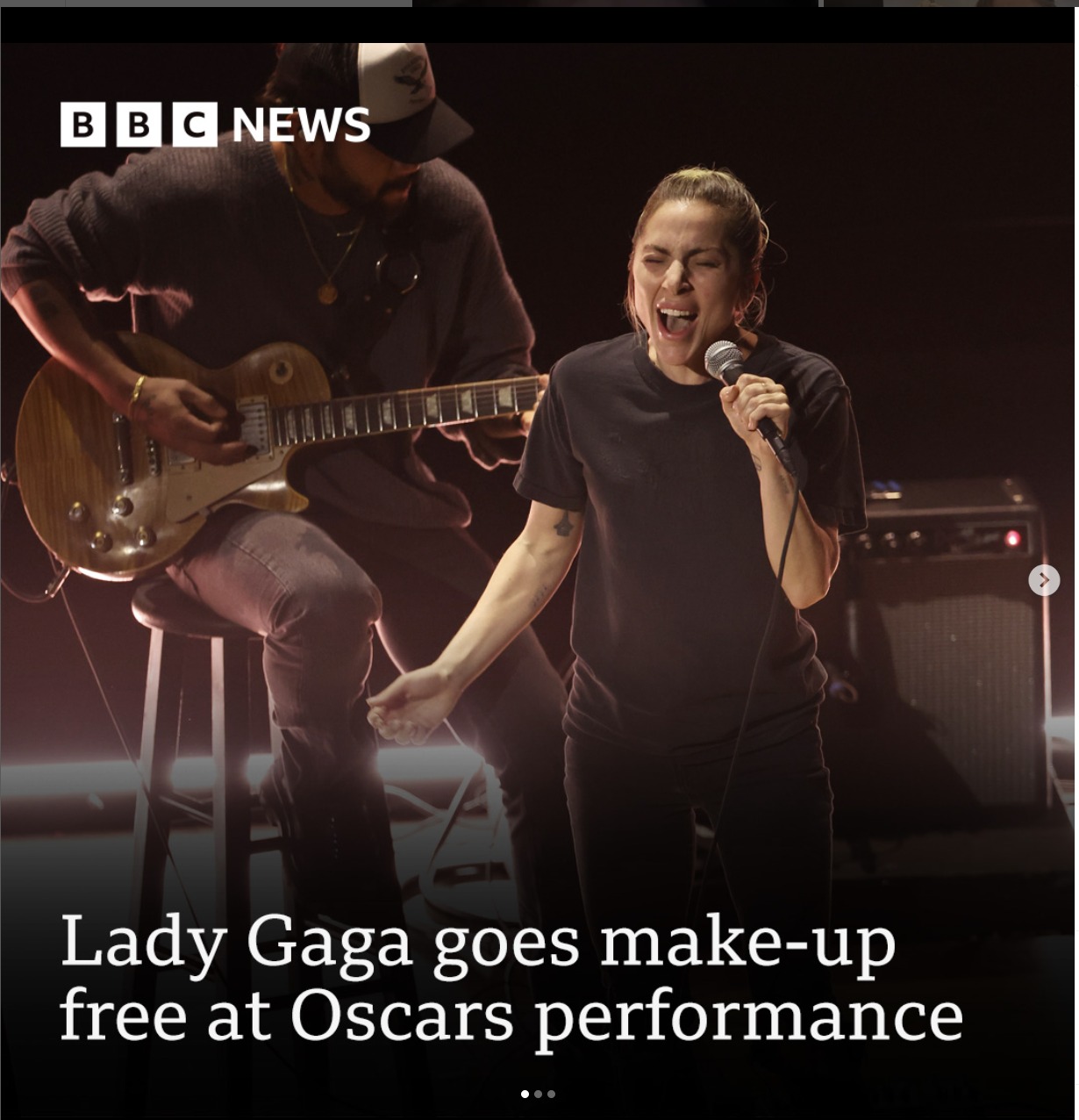 誰想到幾年後的現在,Lady Gaga 會在奧斯卡頒獎典禮的舞台上,主動選擇了素顏的演出呢?我覺得她傳達的訊息格外動人,也很喜歡那一份溫柔、真實、勇敢的力量。